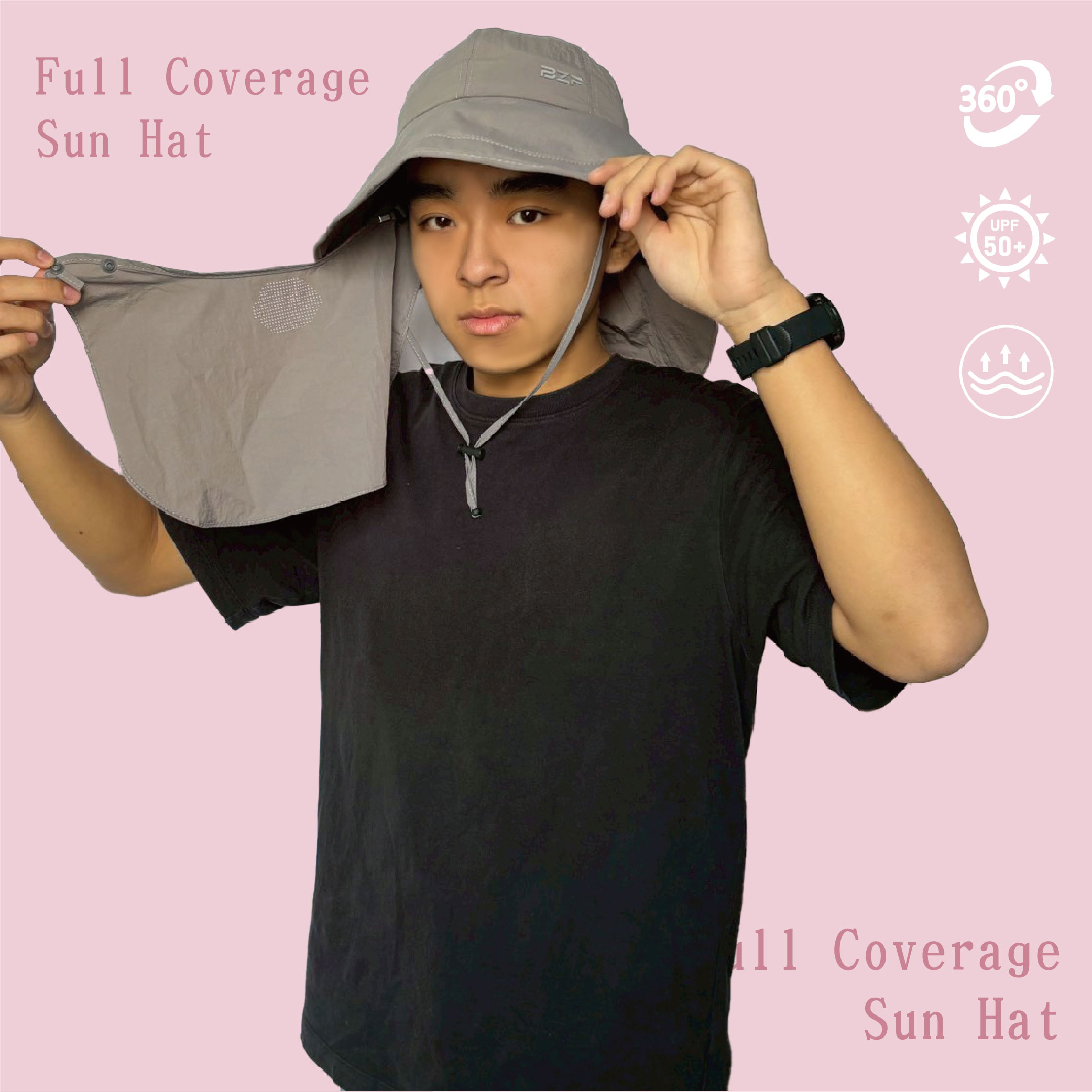 夏日防曬戶外必備單品加長護頸後擋片,能有效遮陽、抗紫外線帽沿加長設計,全方位防曬保護,舒適佩戴後端高開口設計,涼爽通風,更可適用紮馬尾群族護頸後擋片可拆卸設計,一帽兩用實用性翻倍防潑水速乾材質,抵禦紫外線,減少灰塵侵擾帽圍鬆緊調節,可抗強風安心配戴防潑水速乾材質,抵禦紫外線,減少灰塵侵擾