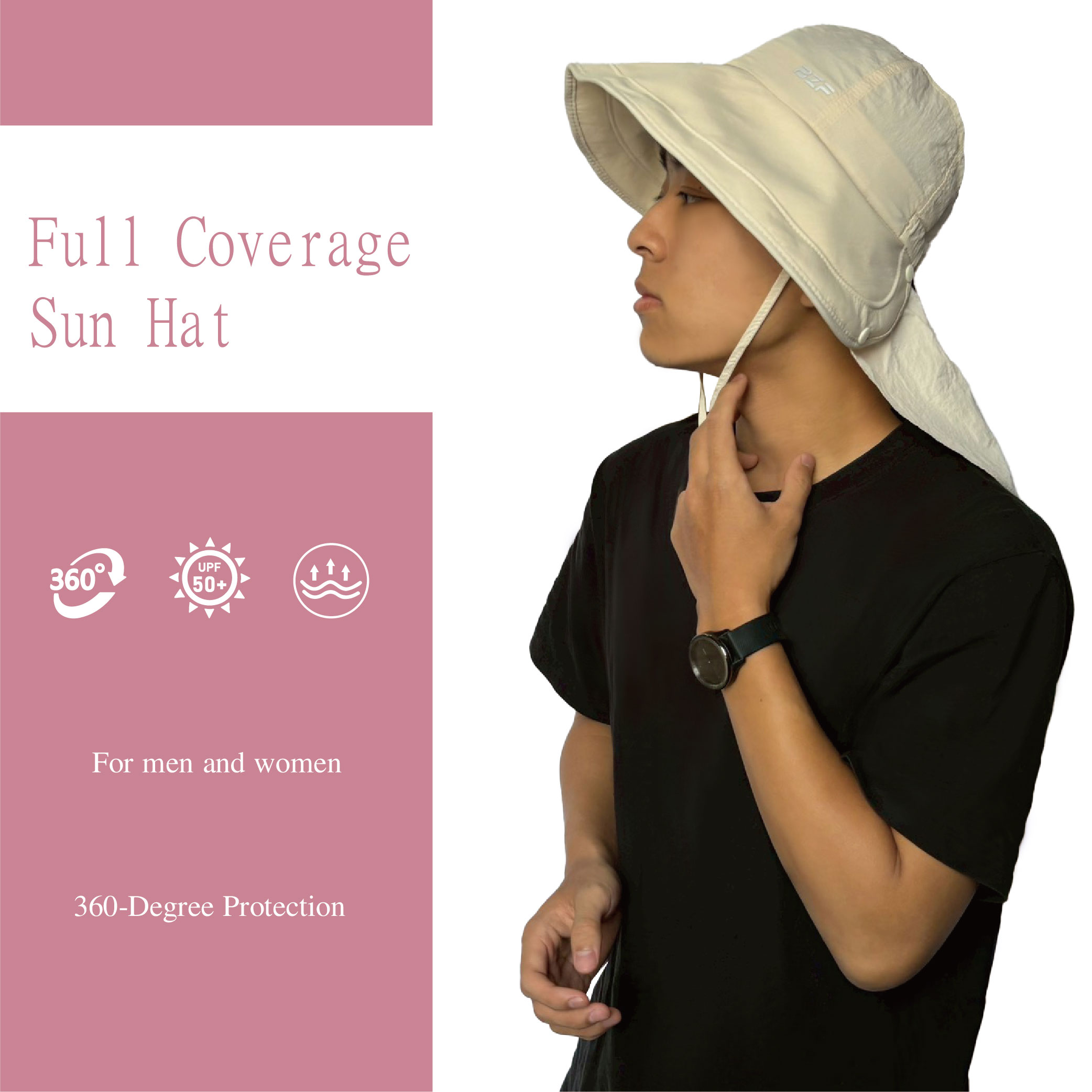夏日防曬戶外必備單品加長護頸後擋片,能有效遮陽、抗紫外線帽沿加長設計,全方位防曬保護,舒適佩戴內層吸排材質,配合間隔車縫,透氣又涼爽防潑水速乾材質,抵禦紫外線,減少灰塵侵擾帽繩鬆緊度可調節,可抗強風安心配戴