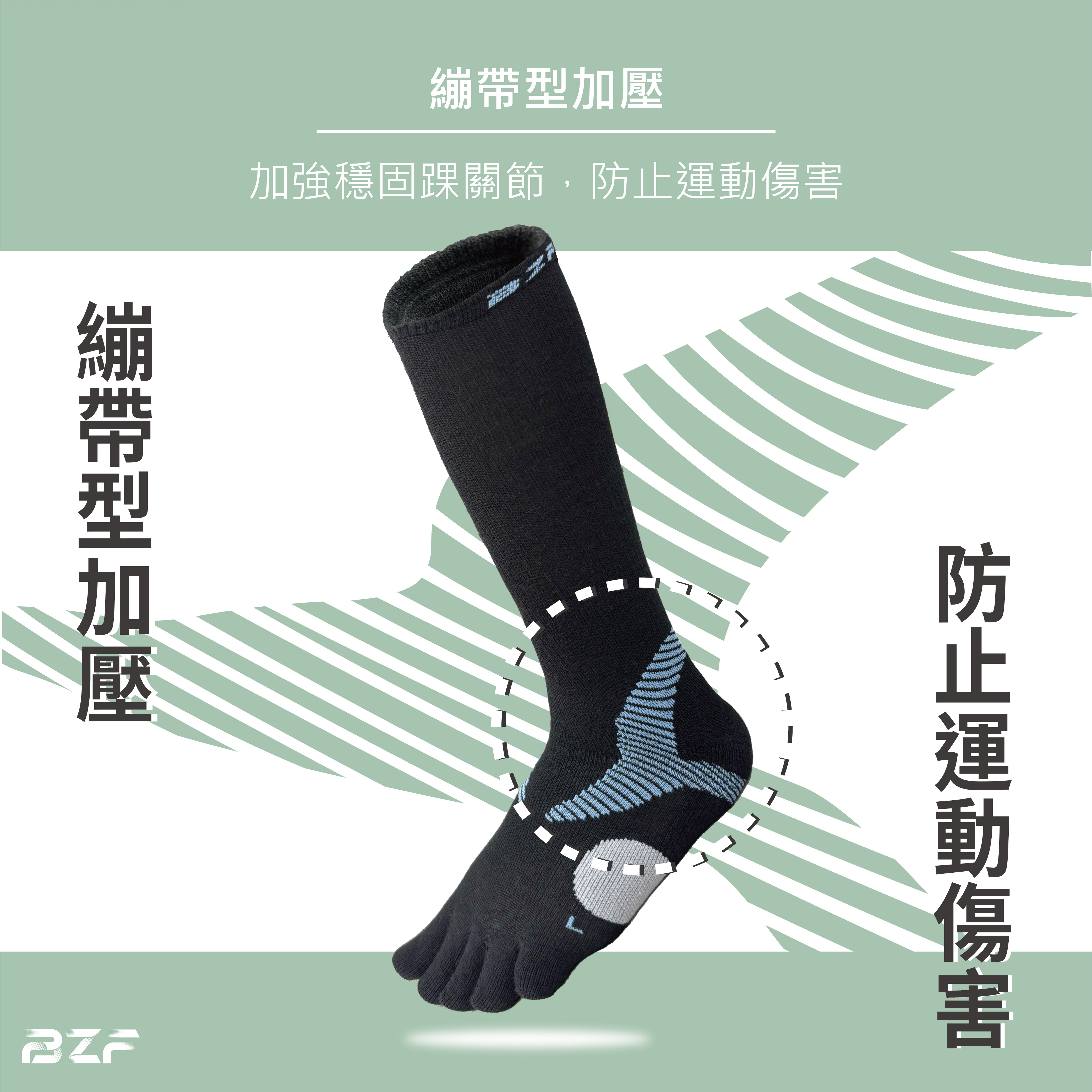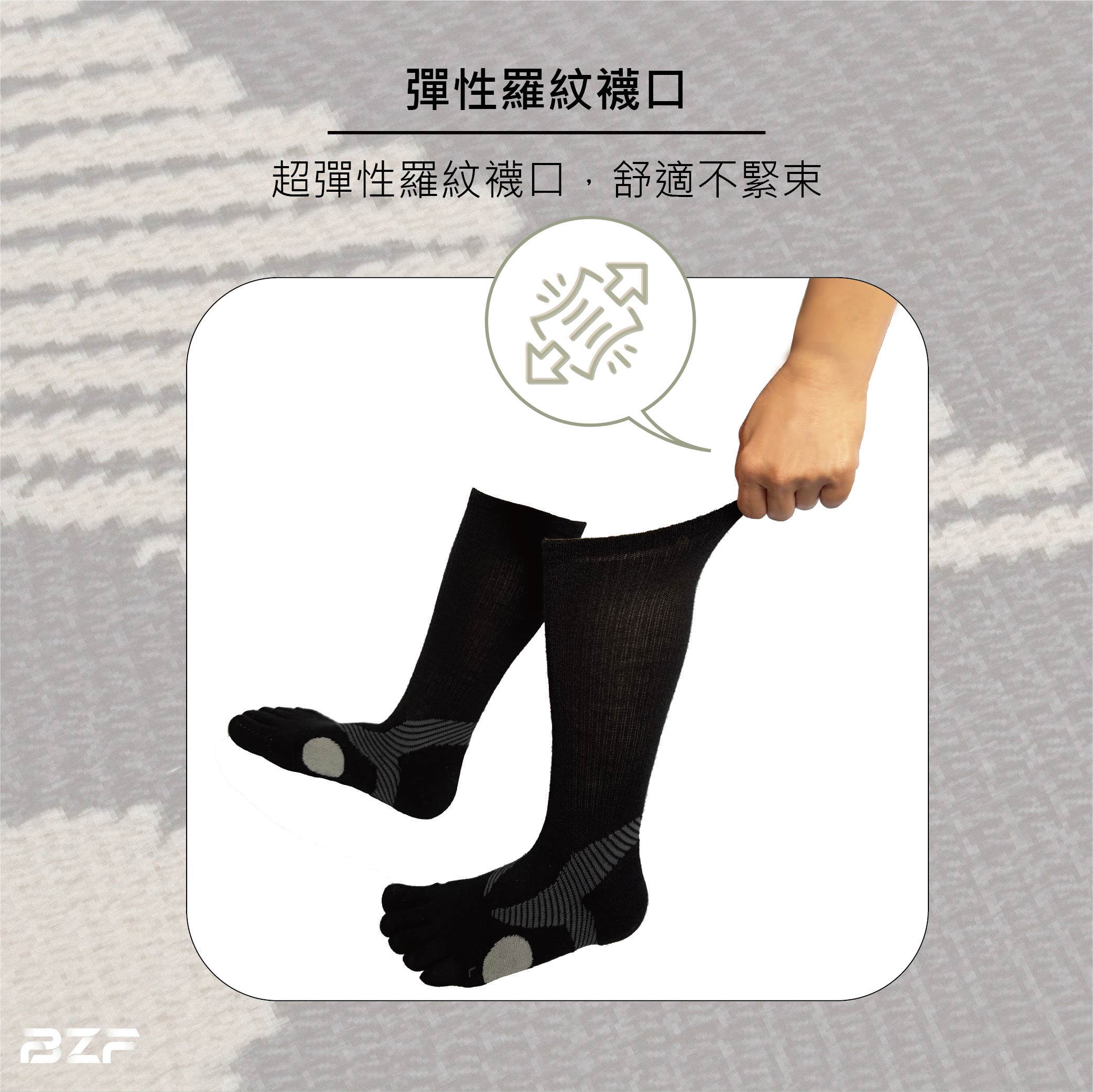 萊卡彈性纖維,完整包覆、伸展力佳五趾襪 / 抗菌消臭 / 無痕 / 無縫縫合 / 毛巾底 / 足弓加壓 / 精梳棉