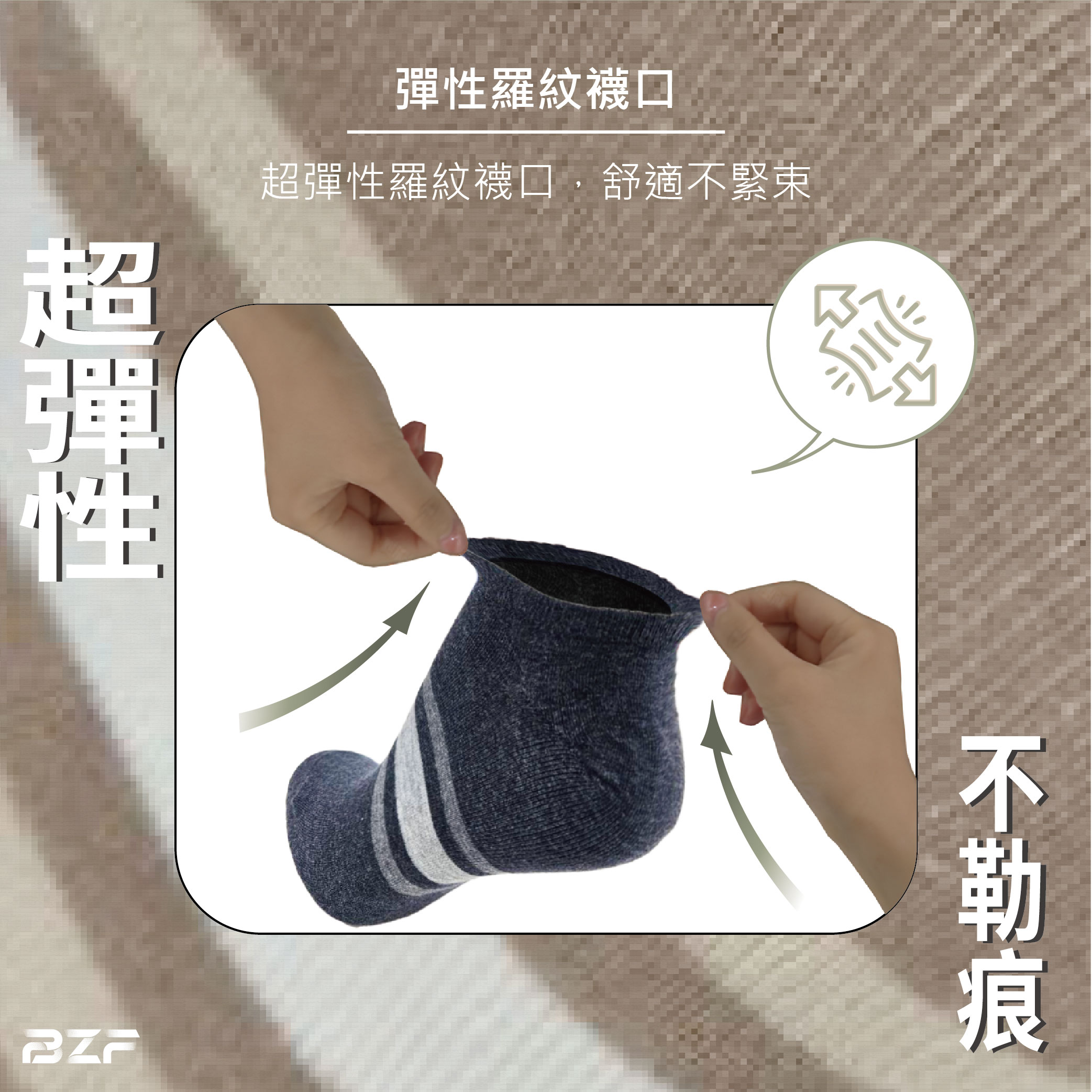 獨特複合纖維 - 石墨烯纖維具有優秀的導熱及恆溫性遠紅外線可改善微循環抗靜電等吸濕透氣功效負離子效用,減少靜電防摩擦消臭排汗,乾爽不悶熱寬口襪口設計,不勒腳