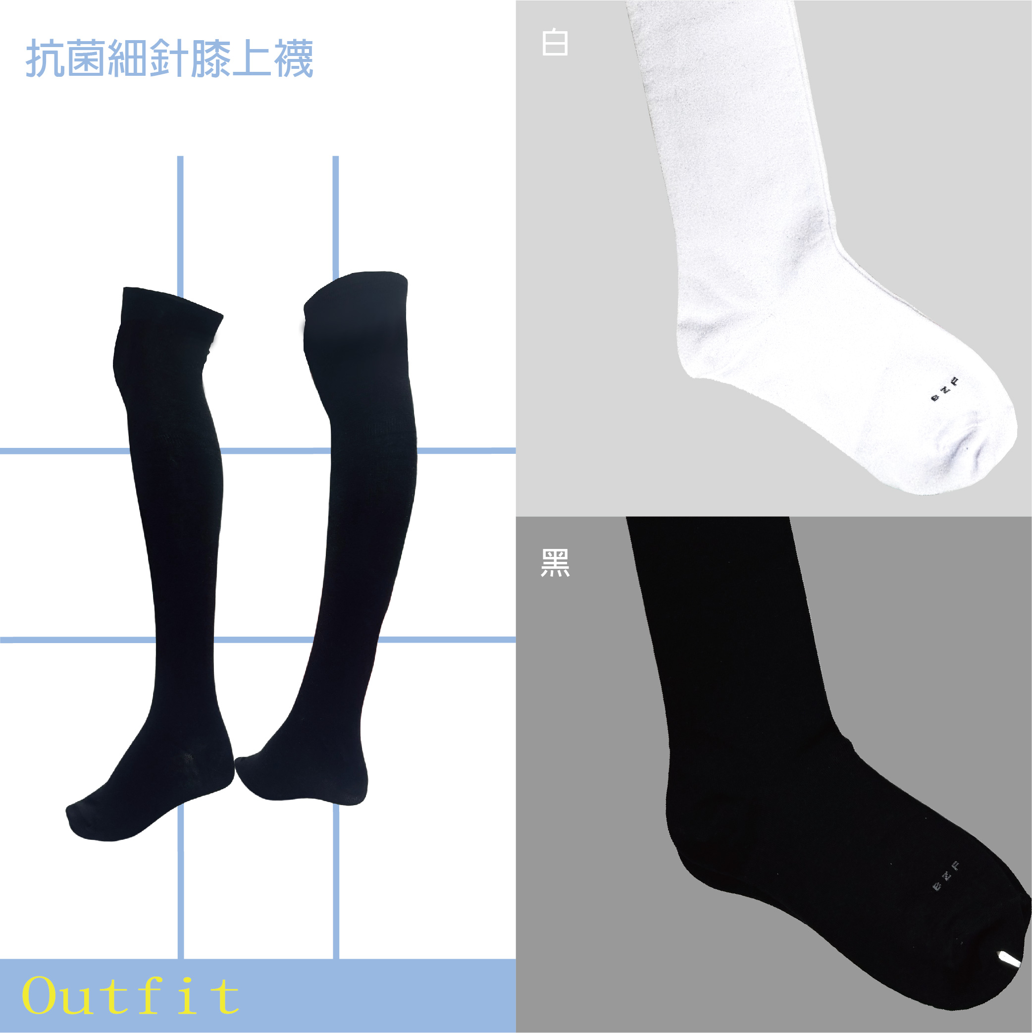抗菌細針膝上襪(J0384)