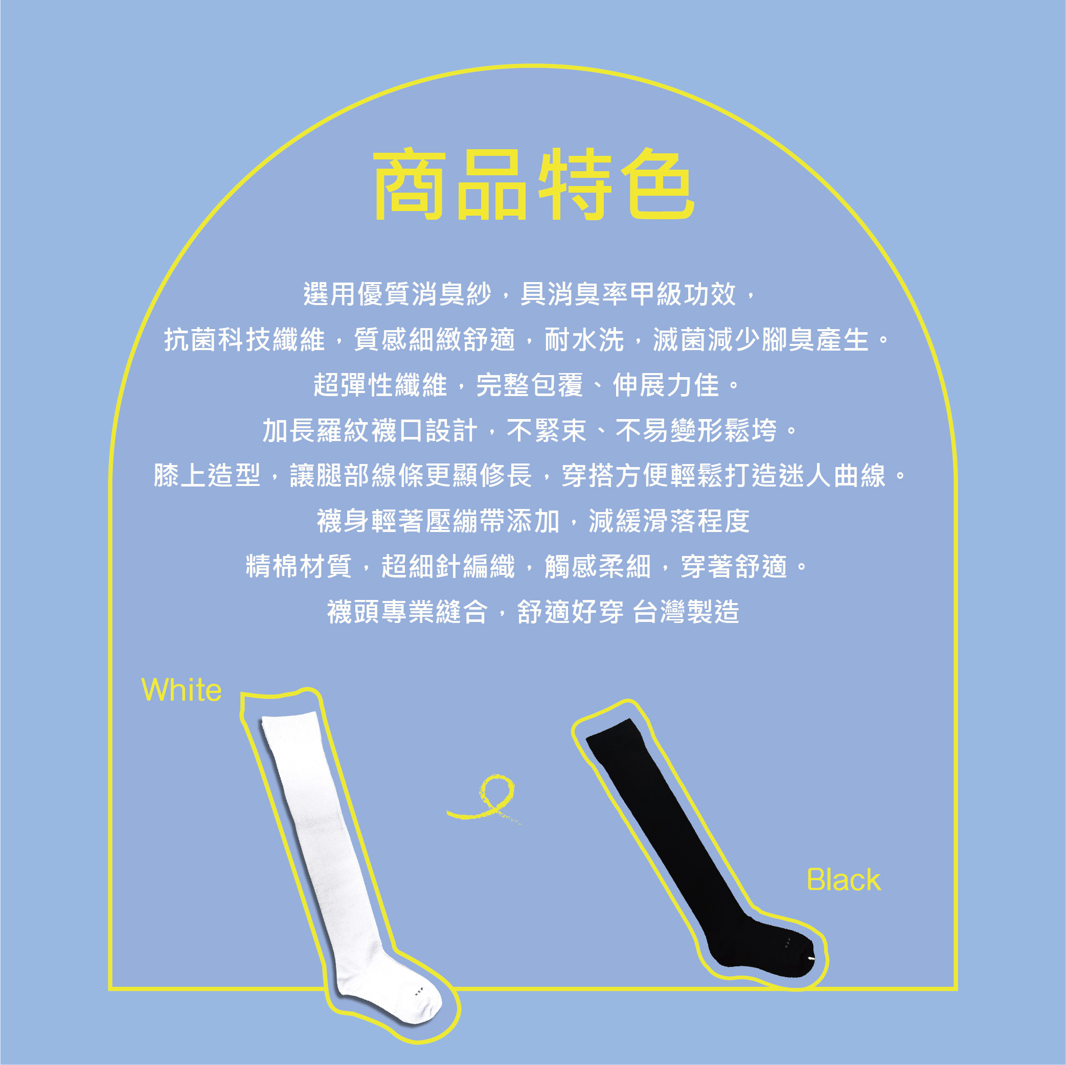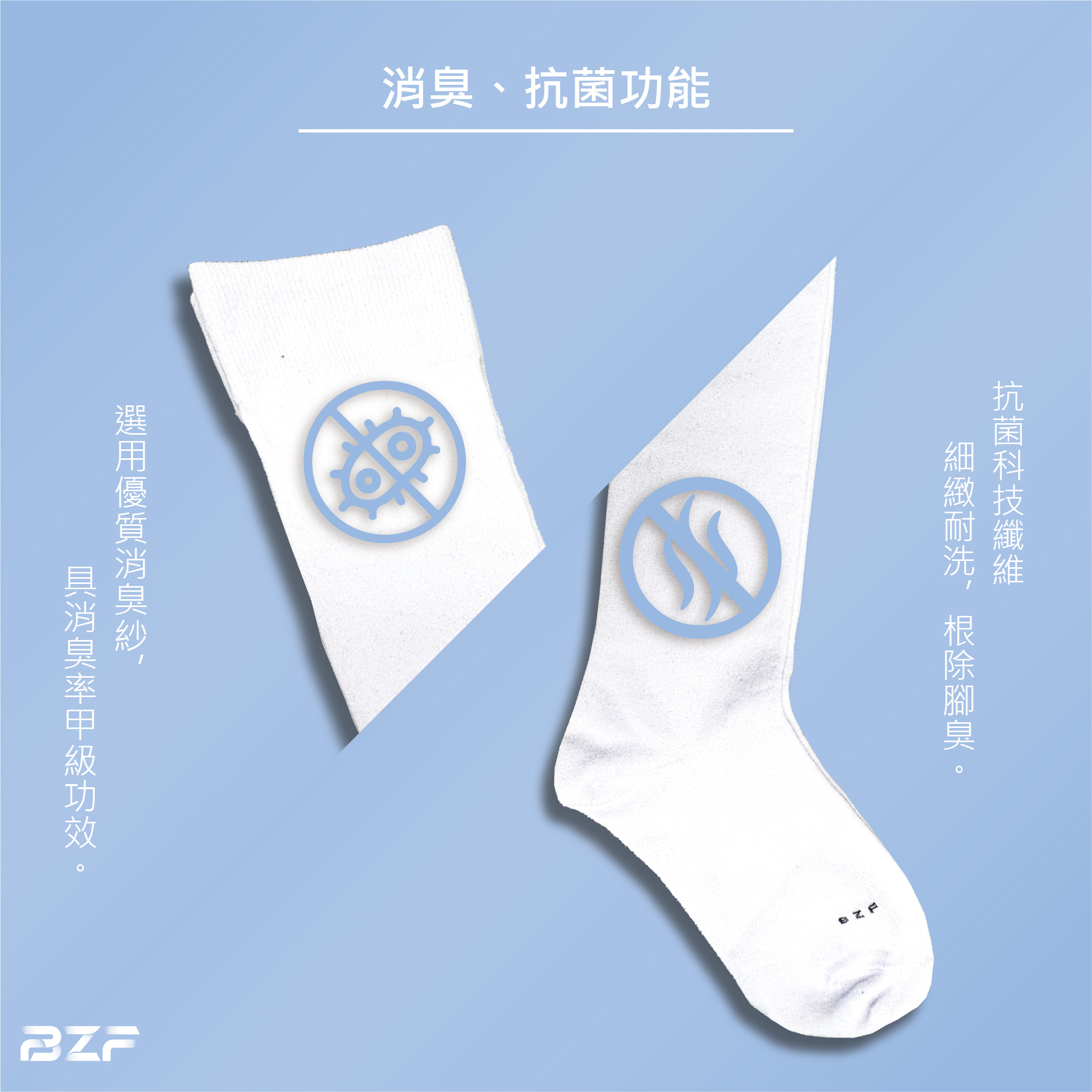 抗菌科技纖維,質感細緻舒適,耐水洗,滅菌減少腳臭產生。