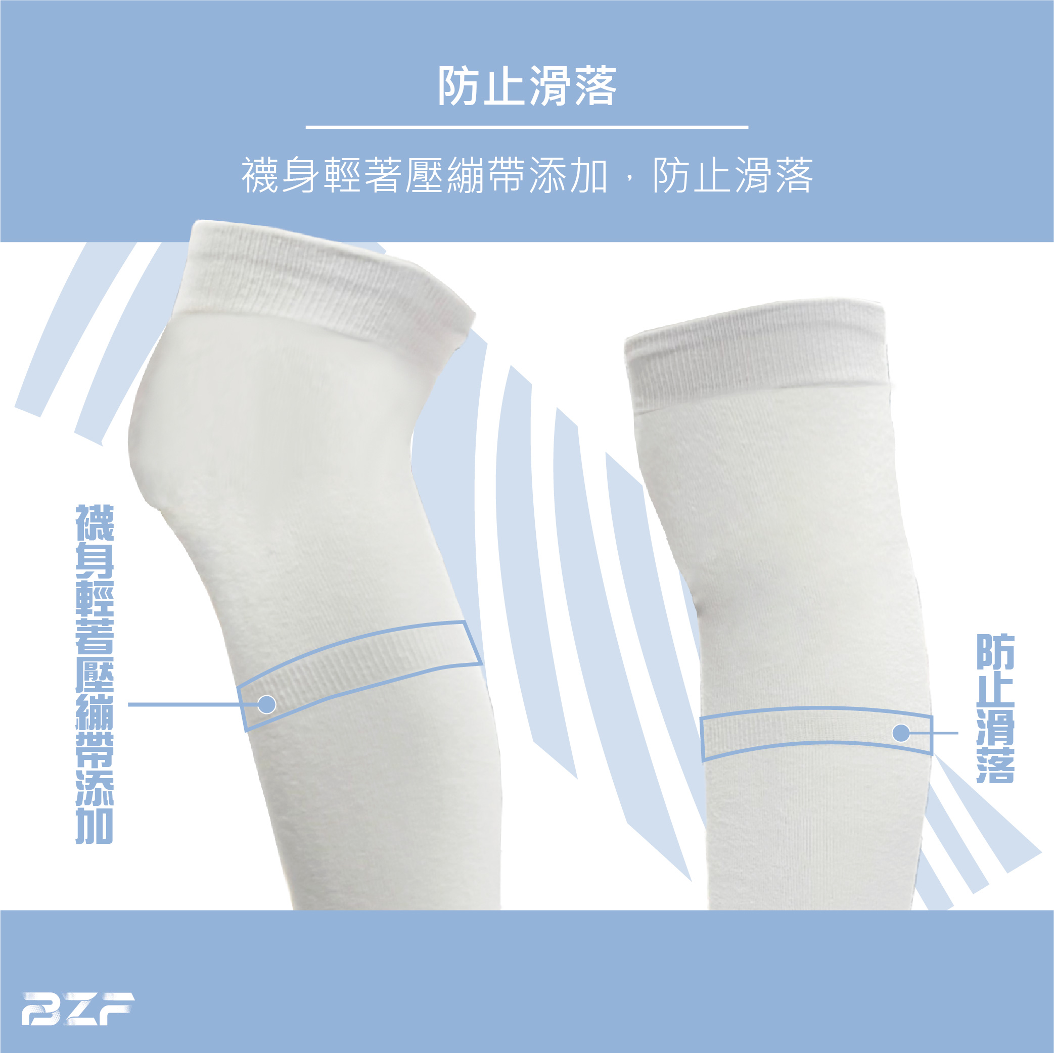 襪身輕著壓繃帶添加,減緩滑落程度